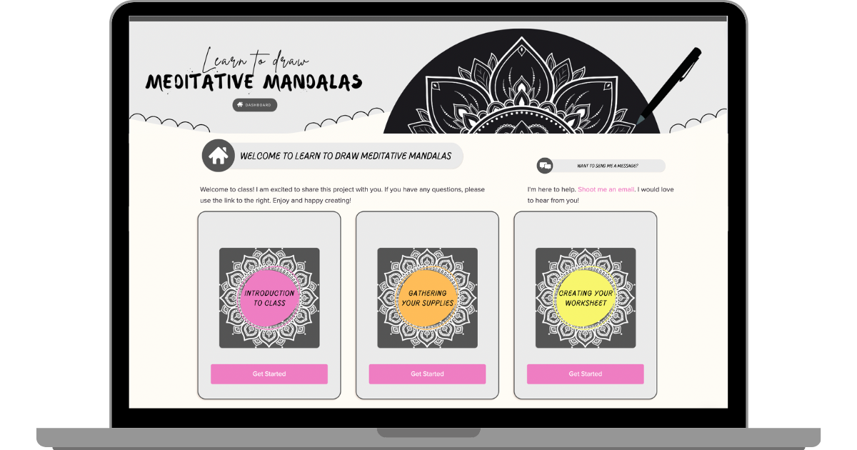 This fun class will teach you three easy ways to get started creating hand drawn mandalas using simple repetitive techniques and easy to find supplies. Once you know how to start your mandalas, the next step is to take one mark or pattern at a time and build on it. Finished mandalas can look super complex but by taking it one step at a time, you too can draw a beautiful work of art while bringing a sense of peace to the process and to yourself.